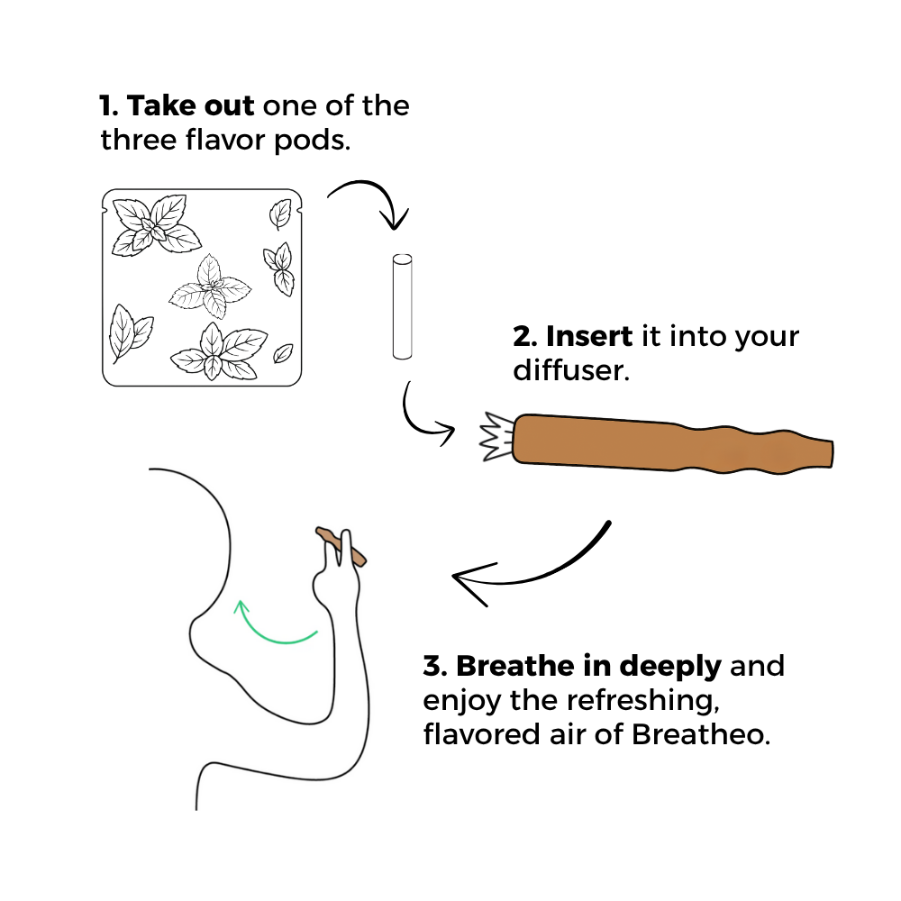 Breatheo’s aromatic air has a subtle, natural flavor — designed for people who want to quit smoking or vaping.